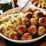 These Turkey and Stuffing Meatballs are easy and cozy. They use ground turkey mixed with classic stuffing mix. You make small meatballs that bake until golden and firm. The mix keeps the meatballs soft and full of flavor. They cook fast and work as a main dish or as a party snack. Serve them over mashed potatoes for a warm, simple meal. You can also set them out with toothpicks and a dip for guests. They pair well with light soups or a simple salad. For soup ideas, try a list of low calorie high protein soups that keep the plate light. These meatballs use a few pantry items and one bowl. You do not need special tools. Kids and adults like them. They freeze well and reheat gently. You can change herbs or spices to match what you have. The recipe fills a small family or a group of guests. It works for weeknights and for easy weekend meals. This recipe is clear and quick, with steps you can follow at home. You can make them mild or add more herbs for extra taste. Leftovers heat well and you can pack them for lunch the next day easily too.